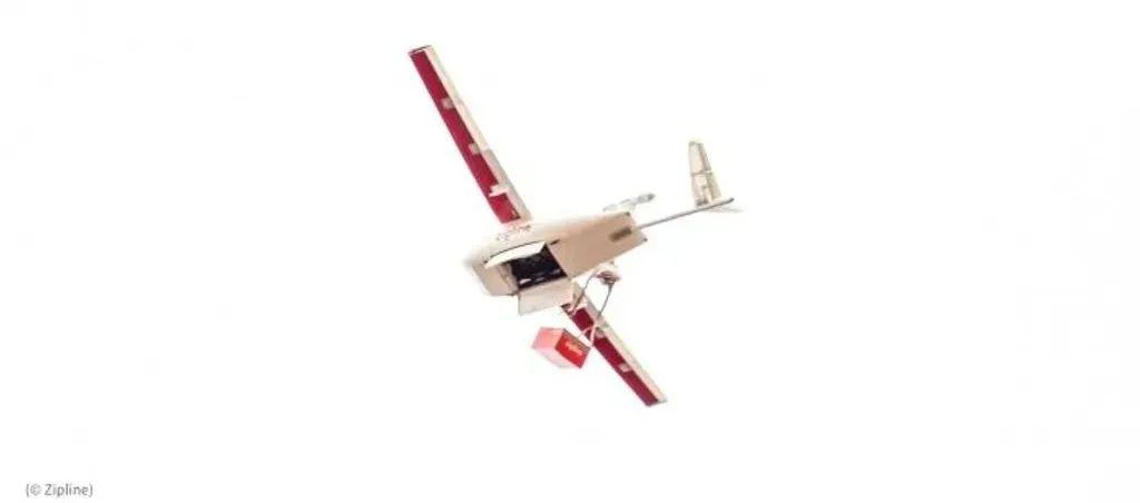 一架无人机在加纳运送冠状病毒检测取样(© Zipline)