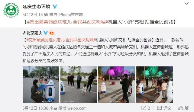 小胖机器人为延庆创城助力,为文明添彩!