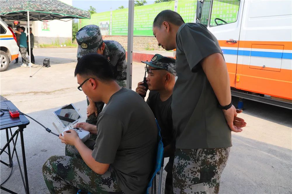 在技术人员的带领下队员们冒着烈日边学习、边操作启动无人机操作将航拍画面传回卫星车▼▼▼