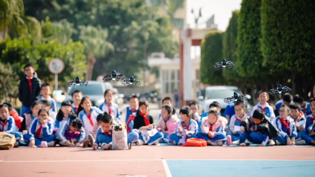 当无人机编队在孩子们的精心部署下,起飞、旋转、悬停、跳跃,摆出他们想要的圆形、爱心、五角星等各种队列,更有七彩灯光加持,肉眼可见的学习成果,现场观看者的欢呼与惊叹,也将给孩子带来极大成就感,更有利于进一步激发他们学习编程的兴趣和欲望!