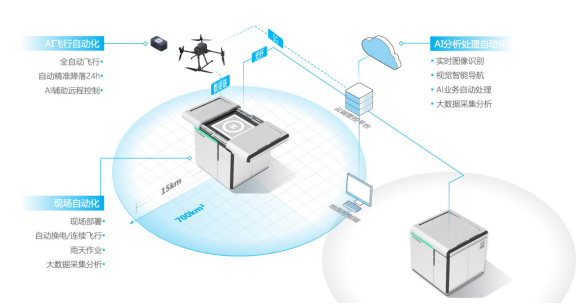 即便操作人员在1000公里之外,都可在云控平台一键启动AI无人机自动作业,并实时回传视频数据智能识别诊断。无人机电量过低时自动返回到智能机场,仅需三分钟即可为无人机自动更换电池,再次起飞执行作业任务。