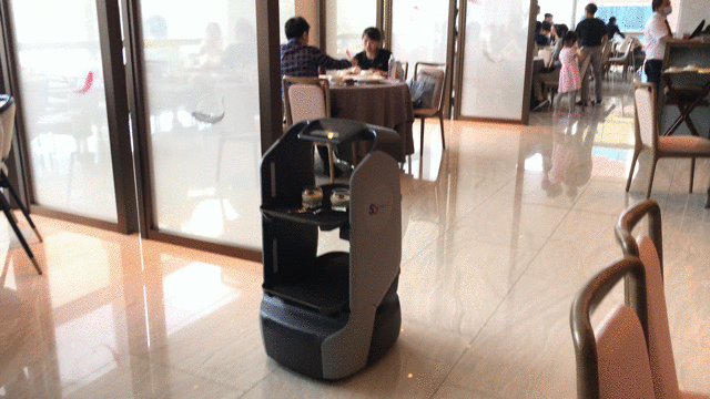 机器人小G在开放式用餐区送餐