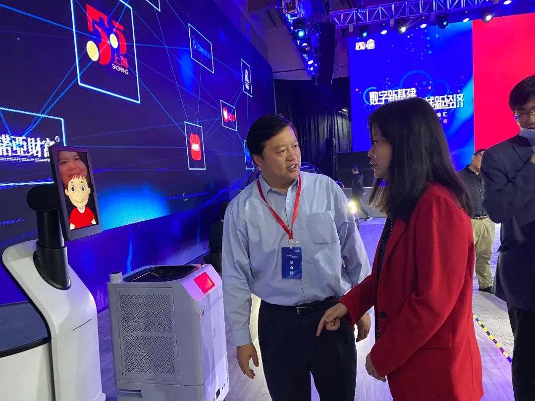 除此之外,达闼科技还带去了5G云端智能多功能室内服务机器人Cloud Ginger Lite。达闼科技总裁黄晓庆介绍,Cloud Ginger Lite是达闼机器人有限公司自主研发的一款5G云端智能高扩展性室内移动机器人。