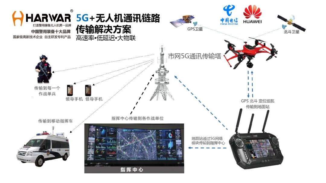据介绍,深圳电信携手警方打造的5G SA网络切片正推动智慧警务迈上新台阶。电信5G SA网络切片突破解决空中连续覆盖等业界普遍性难题,搭载5G技术的哈瓦警用无人机通过5G网络分配的高带宽和低时延切片通道,保障警务无人机实现空中飞行控制及大带宽视频数据传输,实现4K画质的高清航拍视频实时回传至警务指挥大厅,通过AI云平台对哈瓦警用无人机拍摄画面实时分析处理。
