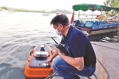 西城区在全市率先采用5G无人船对北海湖进行巡查监测,无人船实时采集画面和水质监测数据回传到后台,实现对水环境的精准全面监测。