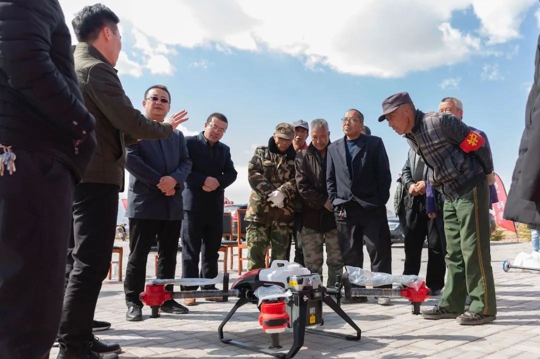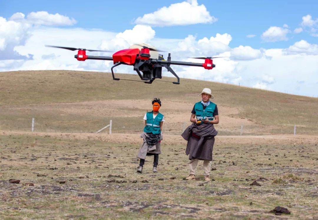 极飞与天镇县政府联合利用先进的农机设备对马家皂乡进行产业扶持2019 年 4 月,极飞联合四川红原县政府,成立首支藏民飞防队,完成万亩草原播种作业,加快草原生态恢复的同时,帮助当地牧民创收、增收,未来还将利用遥感无人机、农业物联网与人工智能技术,进行牧草生长监测、草畜平衡测算、植被盖率测量和草场生产力评估,为当地生态建设、牧区精准扶贫等工作提供更科学的决策依据。