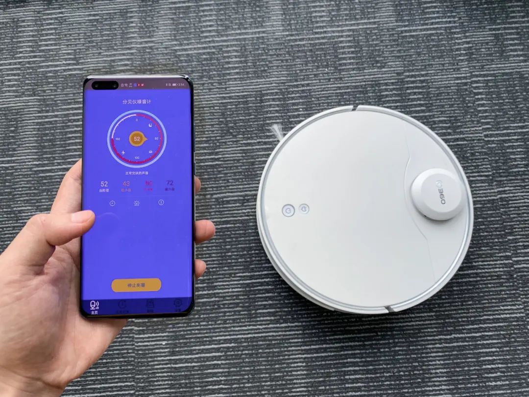当然啦,只有出色的能力还是不够的,聪明的扫地机还学会安静不打扰。在静音模式下,产生的噪音为52分贝,和我们平时说话的声音差不多,基本上不会觉得很吵。