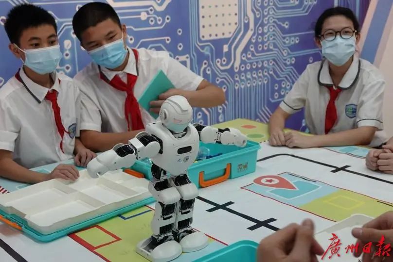 中国教育科学研究院荔湾实验学校的特色课程是AI课程,第一堂课是机器人编程与控制。