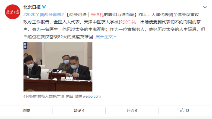 “我们现在的传染病法要求报告的时候是由省一级发现以后报到省,省里讨论以后报告省政府,政府决策以后再向中央来报告。这次提出要讨论修改传染病法,改成直报系统。基层发现问题以后可以直接报给省,也可以直接报中央”——张伯礼