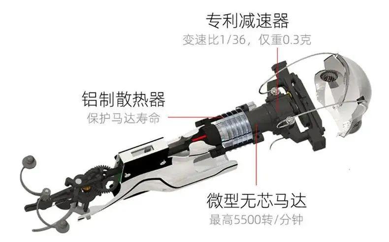 与一般飞行器不同,内置一个微型机械无芯马达,且自带铝制散热器,由可充电锂聚合物电池供电。