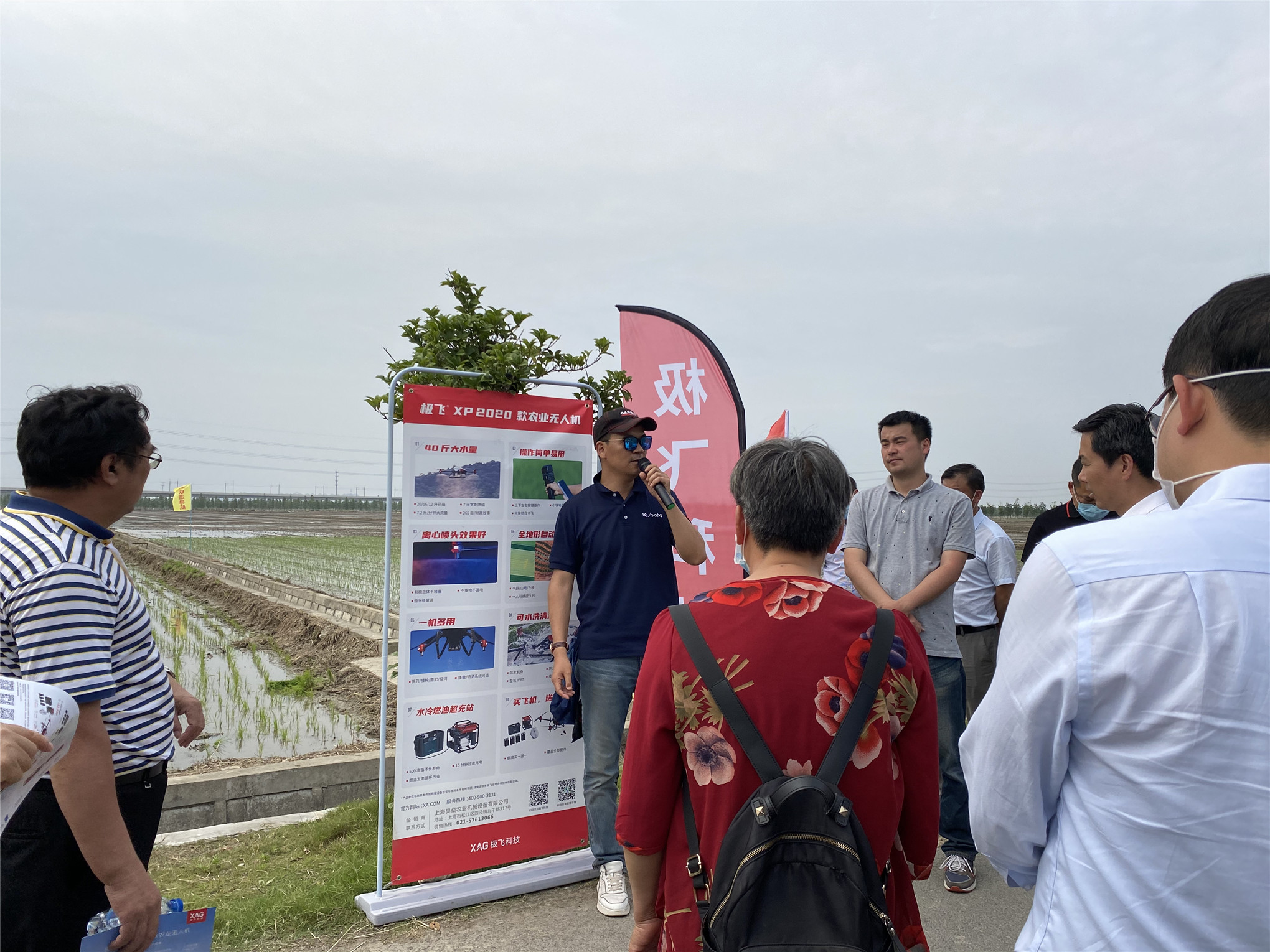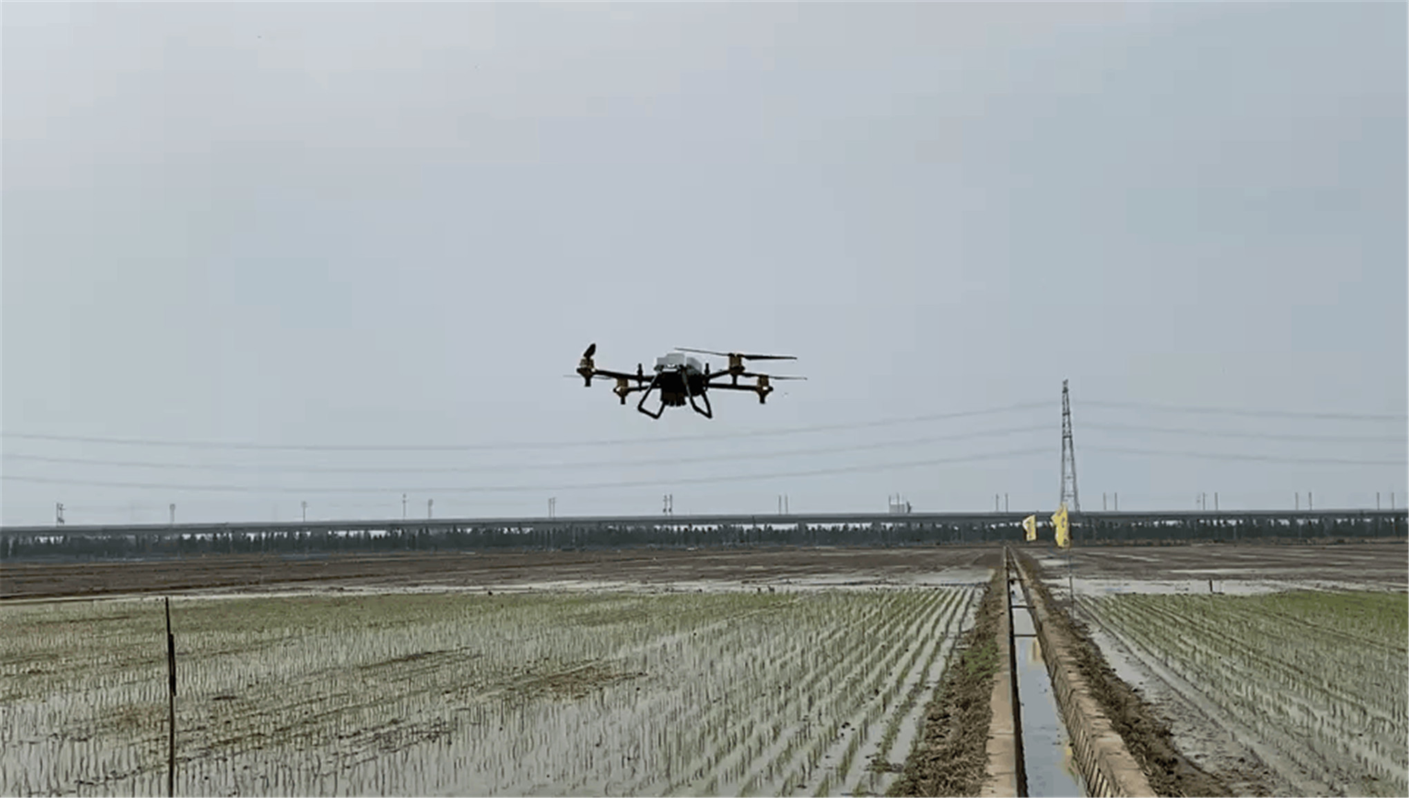 伴随着“嗡嗡”声响起,现场另一个“重量级”嘉宾——农业无人机起飞,在田间播撒药水。工作人员介绍,这款无人机配备了自动避障功能,能在所有地形条件下轻松高效开展播种、撒肥、施药和投饲工作。