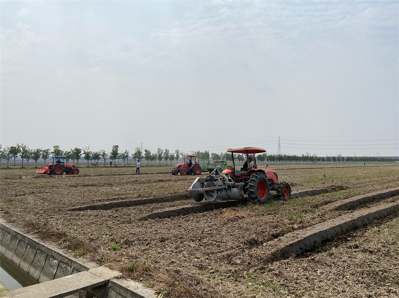 新型筑埂机、厩肥撒播机、水田埋茬耕整机、水田平地搅浆机、自走式喷杆喷雾机、水稻精量穴直播机……各种新型农机具“整装列队”,依次演示。