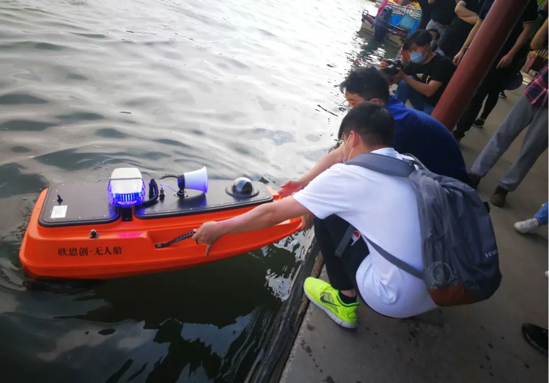 无人船可提前设定巡逻路线,航线也可实时更改。如果水域情况比较复杂,比如北海,湖面上有很多游船,则可以由工作人员在岸上遥控小船。遇到障碍物,无人船通过雷达扫描,将自动躲避;如果障碍物实在绕不开,则会立刻“刹车”。