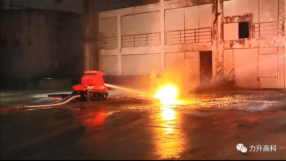 与此同时,一架携带泡沫喷射装置的大型多旋翼无人机飞到楼顶上空,机上挂载的泡沫灭火枪对准了楼顶火点开始喷射,一阵猛烈的泡沫雨瞬间倾盆而下。力升高科耐1000℃高温机器人在熊熊烈火中岿然不动,对起火点进行零距离精确打击。耐1000℃高温技术的面世,将给传统消防机器人灭火战术带来前所未有的革新。耐1000℃高温消防灭火机器人冲进火场点对点、零距离的灭火战术将成为未来消防作战的主流。