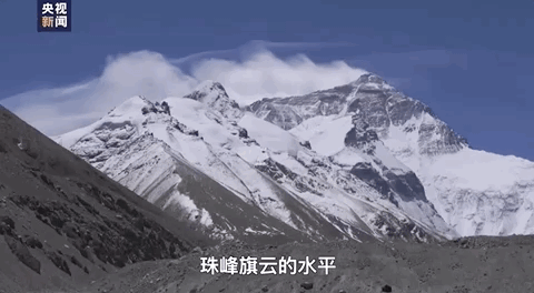 晴朗时珠峰顶常飘浮着形似旗帜的乳白色烟云,这些珠峰旗云随着风力形状变幻万千,伴随着光线呈现出夺目光彩。