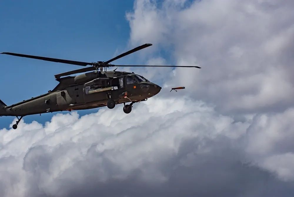 美国陆军航空与导弹中心近期发布消息称,此前已在亚利桑那州尤马试验场成功完成了从UH-60“黑鹰”直升机上发射ALTIUS-600无人机的试验。这架UH-60“黑鹰”的短翼挂架上,副油箱、导弹和火箭发射巢的挂点换上了长而细的圆筒状无人机发射装置,试验中ALTIUS-600无人机从发射筒中弹出,顺利展开一对机翼,在“黑鹰”直升机的控制指挥下向前飞行,此外无人机成功完成画面的实时传输。
