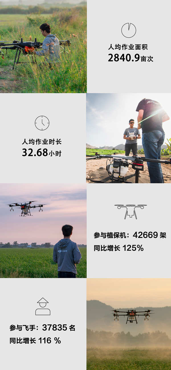 在42669台植保机,37835名飞手的共同努力下,大疆植保无人机年度亿亩里程碑仅用了146天便顺利达成。飞手人均作业面积2840亩次。