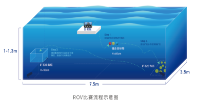 海底巡线竞速赛在真实的海洋环境中设置赛道,赛道设有出发门、终点线和浮框,在出发门和终点浮框下面布设有声学发声器,通过机器人识别跟踪声源位置完成比赛任务,赛道终点浮框由四个浮体立柱和四方形漂浮方框组成。通过设37.5KHz黑匣子水声发声器,引导机器人航行抵达终点浮框位置,浮出水面,沿水面折返至起点完成比赛。