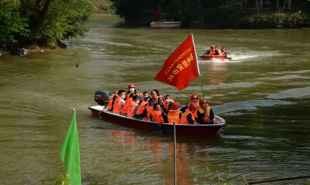 在利川市凉雾乡演练现场,无人机升空,喊话示警,驻村“尖刀班”成员敲响铜锣、开启喇叭示警,劝导村民撤离。有的村民在消防救援人员的帮助下通过橡皮艇、冲锋舟转移,有的在驻村“尖刀班”的带领下经吊桥迅速撤离。9时23分,村民撤离完毕。
