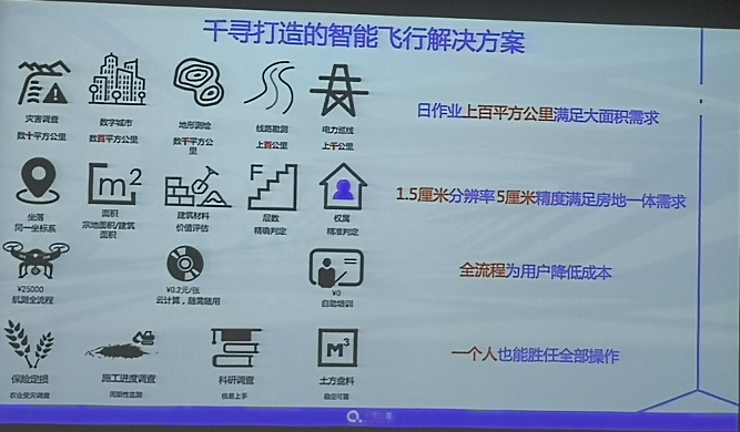 总结来说,千寻打造的智能飞行解决方案覆盖多个领域,满足大面积作业要求;高精度高分辨的优势可满足房地一体需求;全流程以及自动化技术,为用户节省了人力,降低成本。