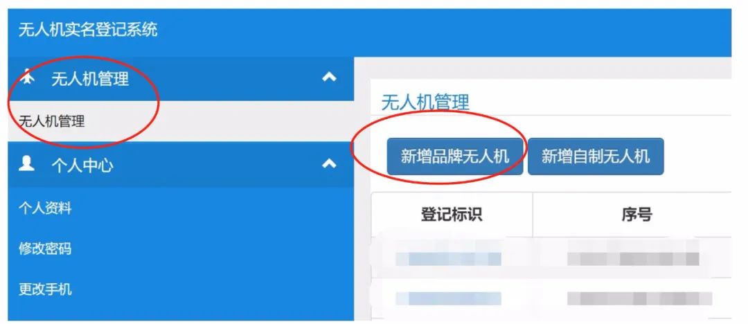 登录成功后,点击无人机管理、新增品牌无人机以绝大部分飞友的DJI无人机为示例
