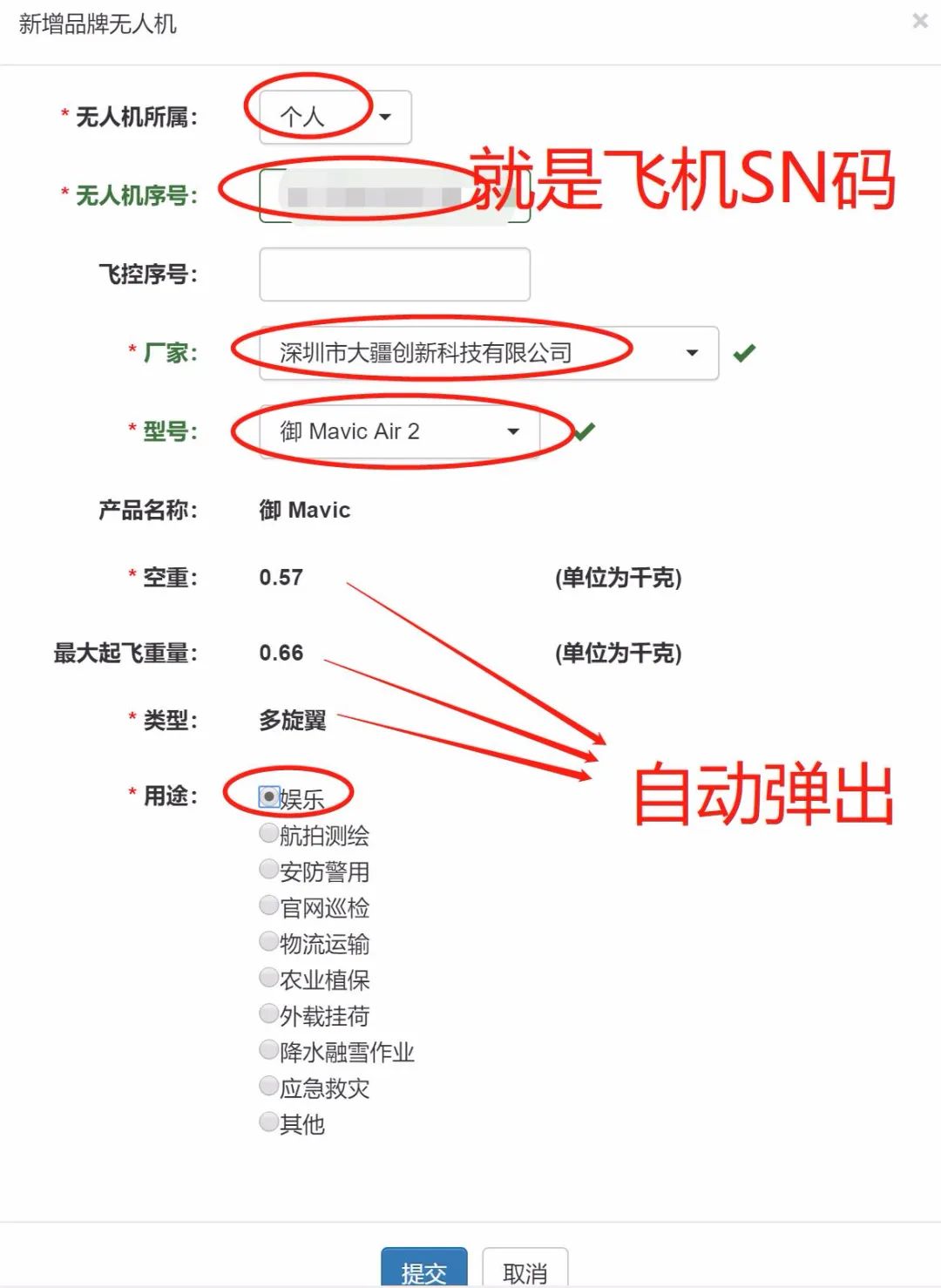 点击新增品牌无人机后会弹出如下界面