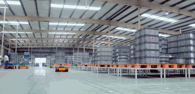 在超过6000平米的国内最大汽车物流无人仓里,只有零星几名工作人员戴着口罩在操作,而保障生产的“主力军”则是快仓的潜伏式智能物流机器人。