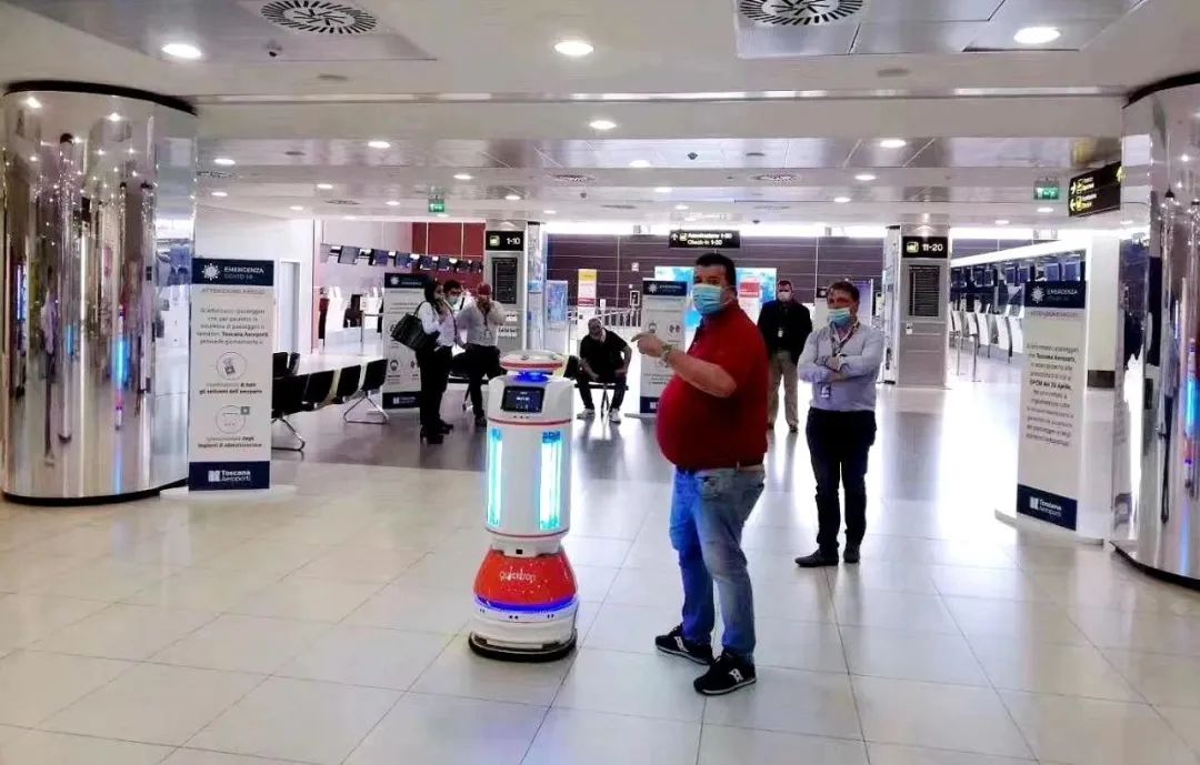 当前,意大利各行各业已陆续复产复工,公共场所不仅加强防疫作业,管理单位倡导也呼吁民众勤洗手、戴口罩并保持社交距离,避免接触传染。为了完善消毒过程,米兰马尔彭萨国际机场(Aeroporto di Milano-Malpensa)成为意大利第一个部署消毒机器人的机场,利用硬核科技360°无死角消杀,防止病毒持续扩散。