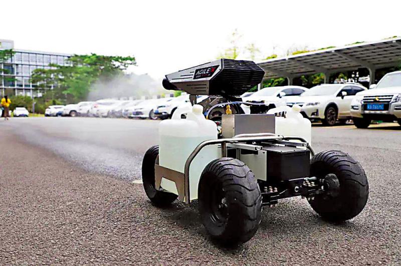 疫情期间,只要敢“创新”,一台小小的机器人也能进化出“大智慧”。四个黑色车轮气势十足地前行,白色“装甲”搭载30L大容量藥壶,以及可以360度喷射的喷枪,这款消毒机器人一旦“开工”,每小时消杀面积达到1万平方米,毫不手软。不仅如此,这款小小机器人可以实现5G信号连接,通过手机远程操控,在医院、社区等场所进行消杀。大公报记者从松灵机器人(东莞)有限公司获悉,这款机器人已经陆续出口意大利、沙特等国家,目前该公司还收到法国、韩国等国新的订单。