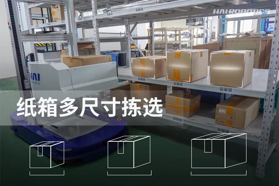 纸箱的业务场景复杂多样,客户常面对难以统一货箱规格和大小的难题,海柔创新贴近业务实景,兼容多尺寸纸箱/料箱,同时支持原箱多次使用,仓储更具柔性。