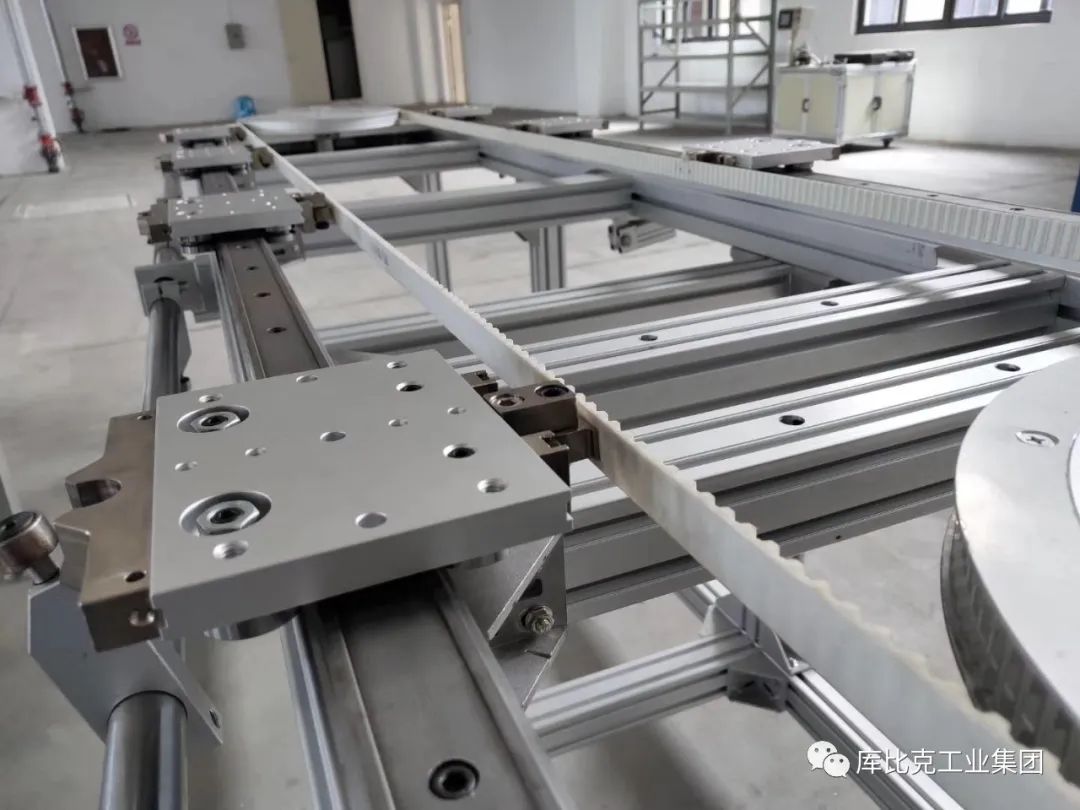 库比克环形导轨采用同步带传动方式,具有诸多优点,可以满足绝大部分应用的要求。同步带传动不存在部件之间的摩擦而产生的磨损。采用聚氨酯同步带,内有钢丝绳,长时间使用之后依然具有很好的精度保持性;传动噪音小。由于同步带的这些优点,同步带在精密环形流水线中的应用越来越普遍。