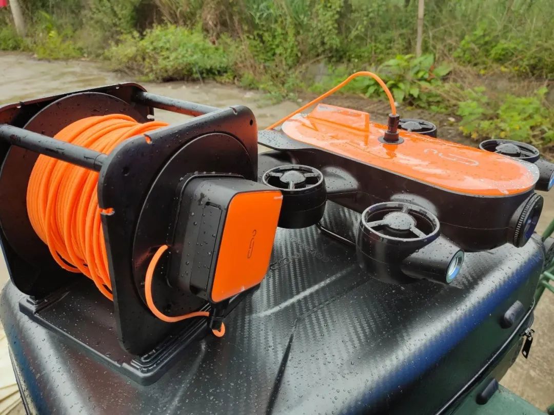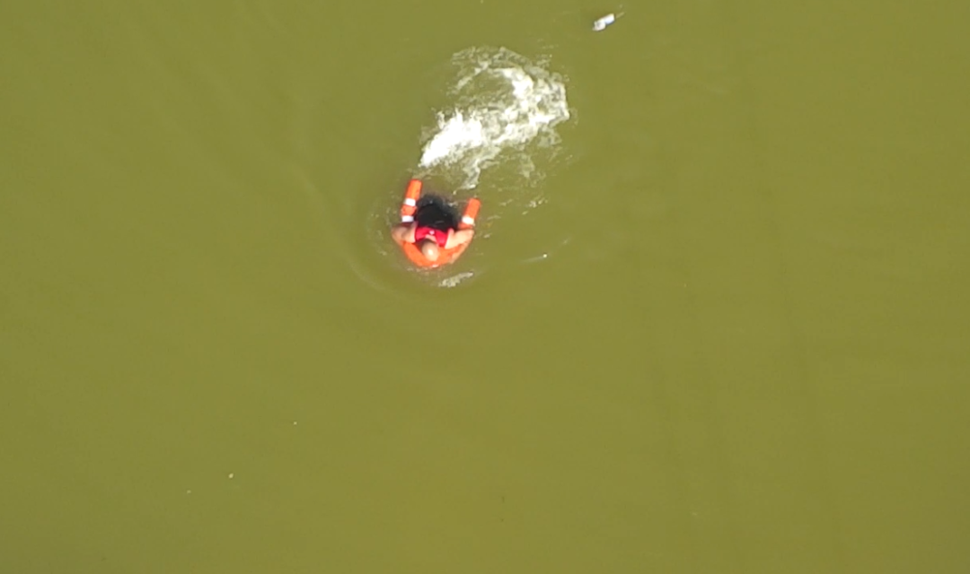 另一名已经沉入河底,水下无人机搜寻,蓝天救援队蛙人潜水救援。