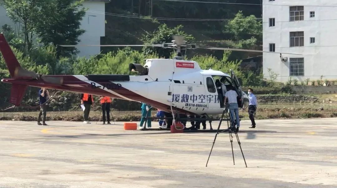 被困水下人员被营救上岸后,生命体征较弱,州应急管理局紧急安排调配直升机进行救援运送,抢救群众生命。