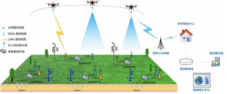 无人机中继系统实现无公网覆盖的偏远地区生态物联网监测数据的收集和传输