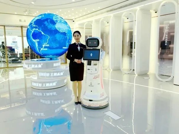 新一代智慧机器人的服务从自主迎宾开始,可以做到在对话互动、引导分流、业务办理、操作指导与答疑、产品推荐等全部服务流程中均有参与。比如,智慧服务机器人在发现客人进入网点时,能够主动运动至客户合适位置,以个性化的迎宾话术、表情和姿态迎接客户,并以伴随方式与客户开展互动,领会客户意图,根据设定策略,为客户提供多类型机器人协同服务。