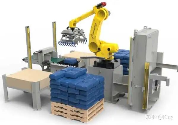 拆码垛机器人在仓储物流中心或者厂内物流环节内,自动机器人拆码垛也是将会经常会用到的应用场景。比如把来的料箱整齐的码放到一个托盘上。