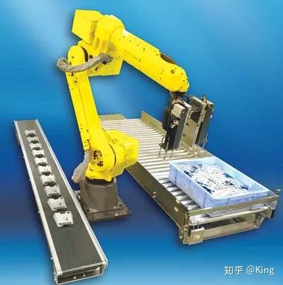 自动装箱机器人而多轴机器人的应用在仓储物流自动化系统里也有着非常广泛的应用,最常见的是装箱,即将零散的单间物品抓取到标准容器里,比如料箱或者纸箱里。通常用的是夹具是实盘和各种特制夹具。