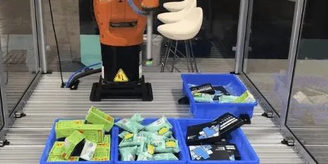 在自动装箱的过程中,经常会遇到如下的情况:在装箱作业中要抓取的物品的种类比较多,比如在电商的配种中心里,有一个用户下了一个订单,需要1盒牛奶和1纸铅笔,牛奶和铅笔这两种物料的体积尺寸完全不一样,同时由于这些物料从上游来打机器人抓取工位时也是被随机置放在抓取工位上,那对于机器人来说这是一个挑战,因为机器人最擅长的是做重复性固定的工作,而此时要抓取的物料大小不一样,具体位置未知,传统的自动装箱过程就不在适用。由此众多方案解决公司提出了视觉识别定位的方案,即对即将要被抓取的物品进行摄像头视觉扫描,经过一定的图像识别算法,判断他们的位置和大小后,将物品的坐标位置反馈给机械手进行抓取。