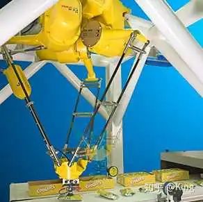 如果被装箱的物品是标准的,同时又需要几块的如果被装箱的物品是标准的,同时应用的场合里需要的效率较高,会采用如下的“蜘蛛手”机器人本体来将上游的小物品抓取到标准的盒子里。