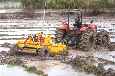 这是激光平地机在瑞安盐碱地稻作改良示范基地里的首秀,它利用激光发射和卫星定位,可精准地将土地推平整,可谓农田平整中的“战斗机”。“人工平整农田土地耗资大、费工多、精度差,使用激光平地机为水稻播种有利于农业生产向规模化、集约化发展,同时也为其他大型农业机械作业提供了便利条件。”陈秀炜向记者介绍说。