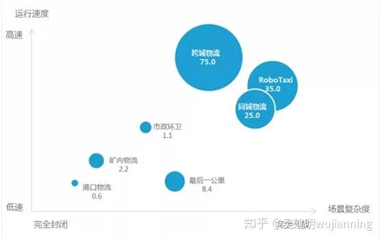 (3)该场景下车辆多为乘用车和商用车,配有驾驶位,当前阶段仍无法去掉安全员的角色。由于涉及人身生命安全,自动驾驶车辆需加装多种高性能传感器,其整体成本因此上升,量产难度大。城市道路与高速公路是两个最常见的开放道路场景,前者典型产品为自动驾驶出租车(RoboTaxi),后者典型产品为自动驾驶卡车。