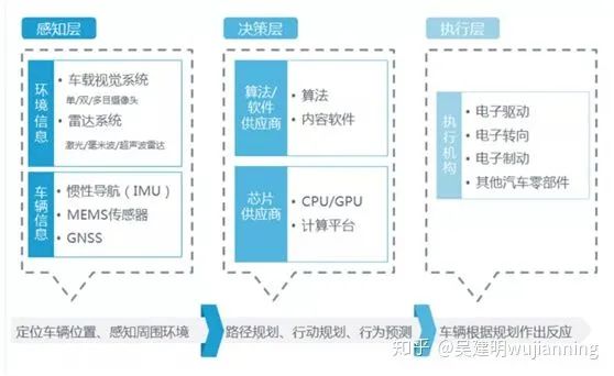 自动驾驶感知层分为环境感知与车辆运动感知。前者帮助自动驾驶车实现环境建模,包括摄像头、激光雷达、毫米波雷达、超声波雷达等传感器;后者为自动驾驶车提供速度、位置、姿态等信息,包括MEMS、GNSS、IMU等传感器。