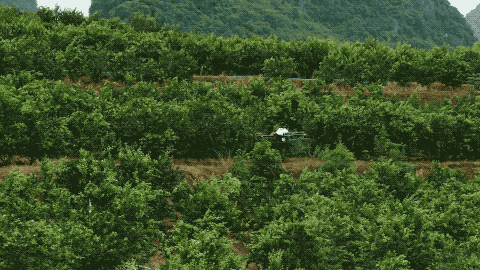 极飞农业无人机四旋翼产生的下压风场,还能穿透果树冠层,使无人机药液能均匀附着在叶片上下,彻底打透果树,让病虫害无处可藏,大大提高果树植保的效果。