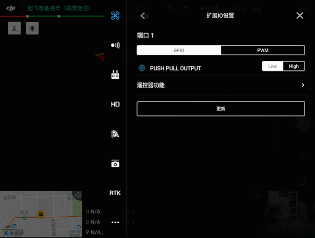 经纬 M200 V2 系列的尾部扩展接口为开发者连接扩展设备提供了很大的便利,新版本的固件支持通过遥控器快捷键即可控制扩展I/O口的输出,方便快捷操作,更加人性化。例如当连接了抛投设备时,就可以直接用遥控器按键来控制抛投动作的触发等等。
