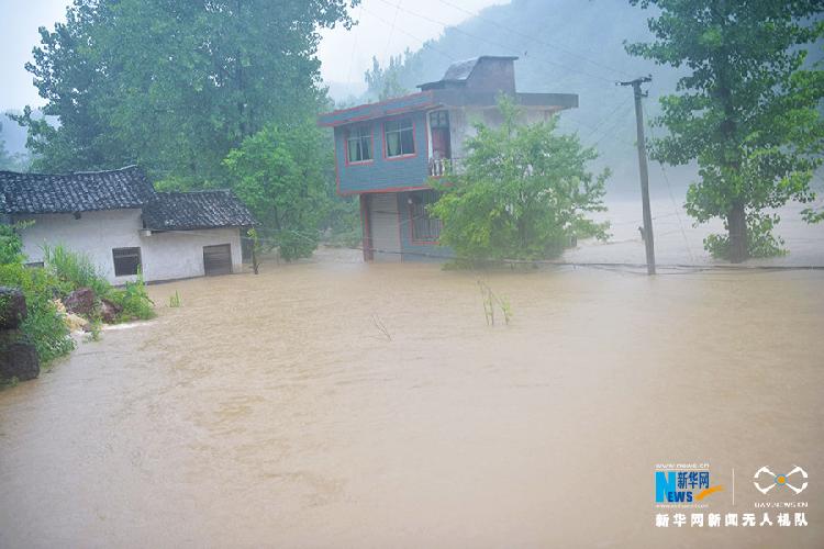 这是6月13日拍摄的重庆市酉阳土家族苗族自治县铜鼓镇被淹的民房。新华网发(陈碧生 摄)