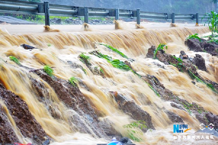 这是6月13日拍摄的重庆市酉阳土家族苗族自治县铜鼓镇,一道路被冲毁。新华网发(陈碧生 摄)