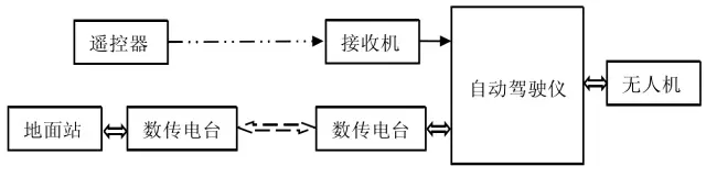 自动驾驶仪(飞控):是整个无人机的控制中心,是无人机最为关键核心设备。它的作用是传递、处理遥控器和地面站发来的控制信息,综合处理加速度计、陀螺仪、高度计、空速计、GPS模块等传感器的输出信息,获得无人机位置、姿态等飞行数据,并输出控制无人机的信号。典型的参见下图: