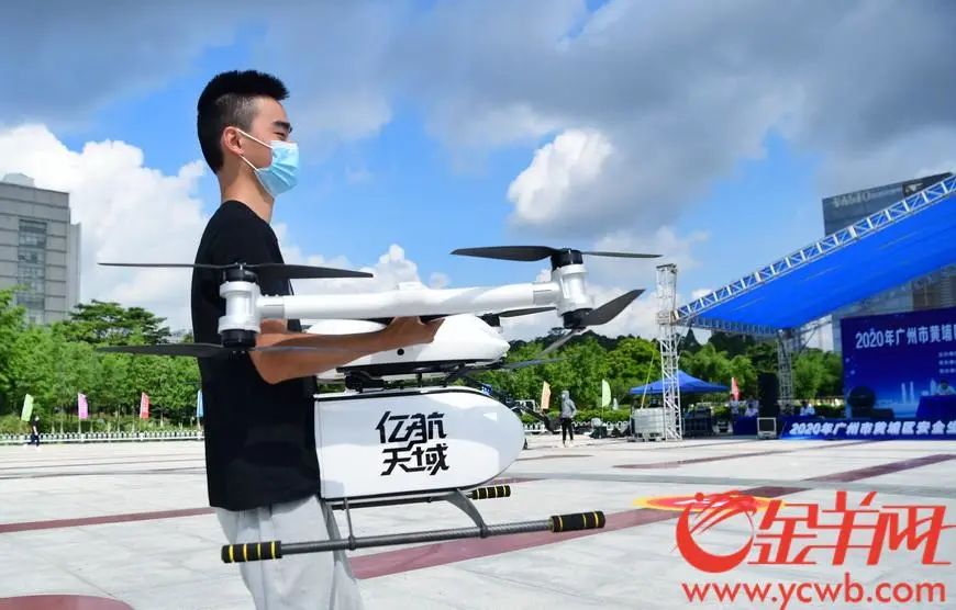 花式举重、绕桩竞速、隔空寻宝……6月12日上午,广州市黄埔区2020年安全生产月活动暨第一届“亿航”空中应急技能大赛决赛在科学广场举办。