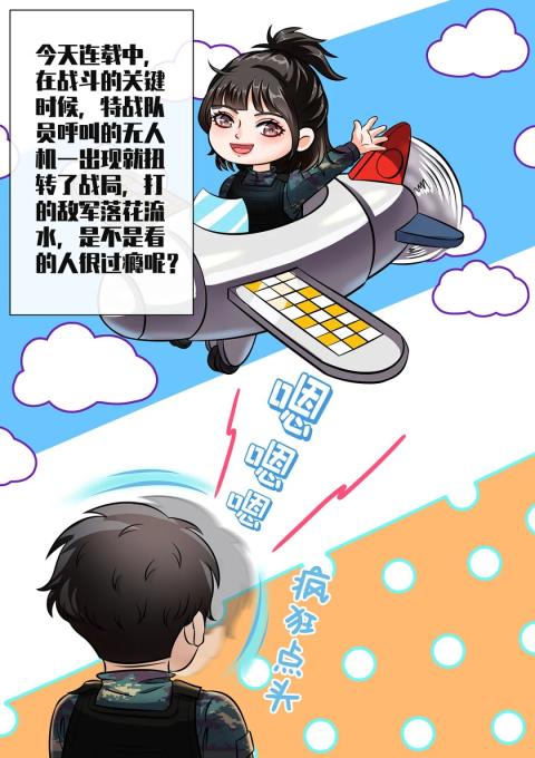 据悉,腾讯动漫日前在网络上连载了一部特战题材军事漫画《特战先锋》,漫画主要讲述了特战尖兵的军旅故事。在新近更新的第三话漫画里,彩虹无人机在关键时刻对“敌人”进行精确打击,赢得了胜利。