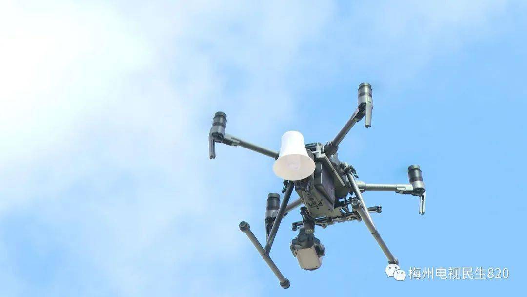 记者在五华县奥园红绿灯路口附近路段看到,一架无人机盘旋在交警执法点的上空,在空中进行路面巡查,协助路面交警进行执法。
